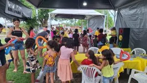 Ao final, esculturas de balão foram oferecidas como brindes aos participantes, incentivando o engajamento nas ações.