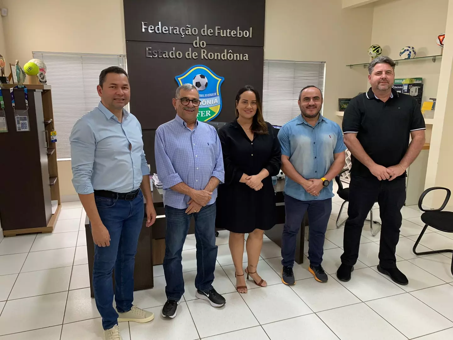 O presidente da Federação de Futebol do Estado de Rondônia, Heitor Costa, acompanhado do vice presidente Alexandre Casagrande e do diretor administrativo Fabrício Medeiros receberam na manhã de hoje o diretor da TV Band Rondônia do Grupo Rondovisão, Ismael de Souza e da diretora comercial Suellen Lemos, em pauta o campeonato Rondoniense Série A de 2025.