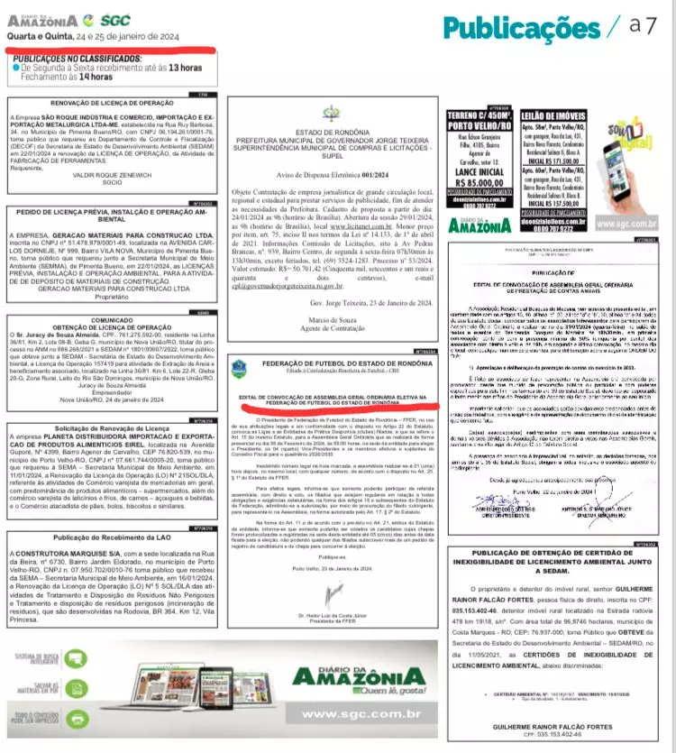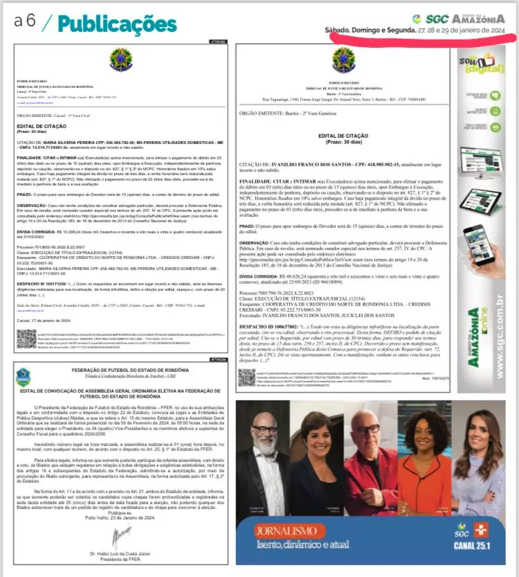 Publicação no mural da FFER Publicação no jornal Diário da Amazônia